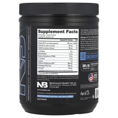 Описание товара NutraBio, Базовый продукт перед тренировкой, голубая малина, 501 г (1,1 фунта)