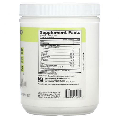 Описание товара Nutrabio Labs, EAA, необработанные без добавок, 317 г (0,70 фунта)