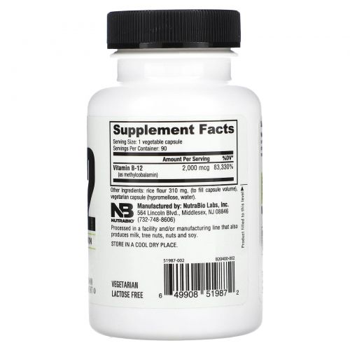 Описание товара Nutrabio Labs, Витамин B12, 2000 мкг, 90 капсул