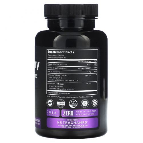 Описание товара NutraChamps, Бузина, витамин C, цинк, витамин D3 и имбирь, 120 растительных капсул
