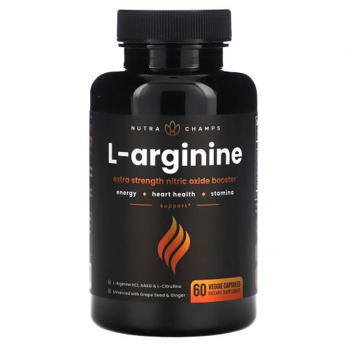 NutraChamps, L-аргинин`` 60 растительных капсул, которые легко глотать