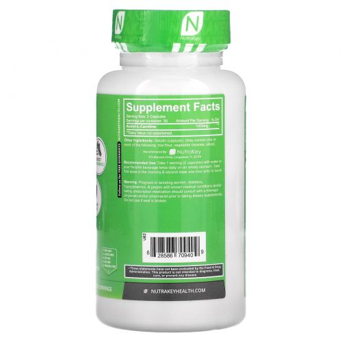 Nutrakey, ацетил-L-карнитин, 1000 мг, 60 капсул (500 мг в 1 капсуле)