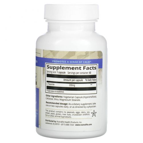 Описание товара NutraLife, L-теанин, 200 мг, 60 капсул