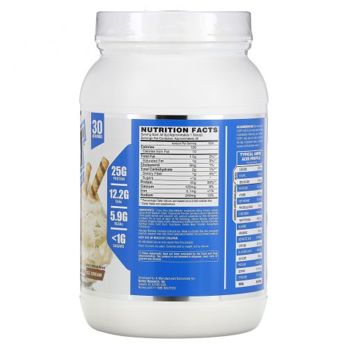 Микрофильтрованный с поперечным потоком изолят сывороточного протеина, высушенный распылением порошок среднецепочечных триглицеридов [среднецепочечные триглицериды (из ядер пальмы и кокосового масла), казеинат натрия (производное от молока), содержит не более 2% каждого из следующих веществ: диоксид кремния, лецитин подсолнечника), органический инулин агавы, натуральные и искусственные ароматизаторы, хлорид натрия, ксантановая камедь, гуаровая камедь, сукралоза, порошок из стручков ванили, ацесульфам калия.