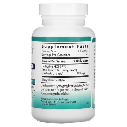 Nutricology, берберин-500, 90 вегетарианских капсул