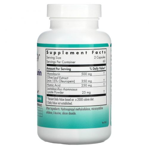 Гумино-монолауриновый комплекс сочетает в себе специально экстрагированные и очищенные гуминовые кислоты с монолаурином, экстрактом листьев оливы и фрагментами клеточных стенок Lactobacillus rhamnosus.