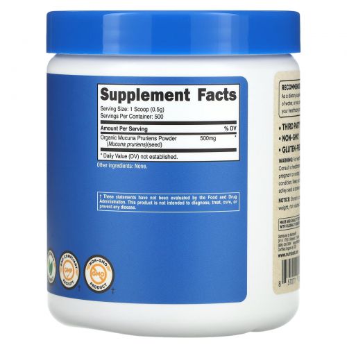 Описание товара Nutricost, 100% органическая мукуна жгучая, без добавок, 250 г (8,8 унции)