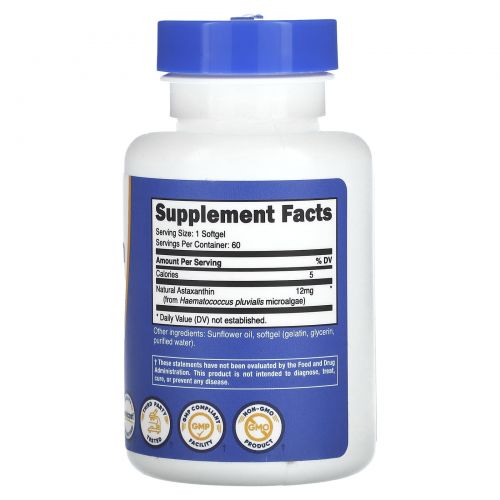 Описание товара Nutricost, астаксантин, 12 мг, 60 мягких таблеток