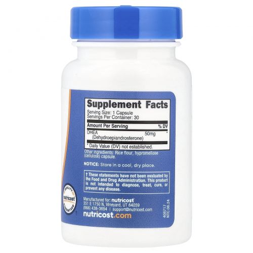 Описание товара Nutricost, ДГЭА, 50 мг, 30 капсул