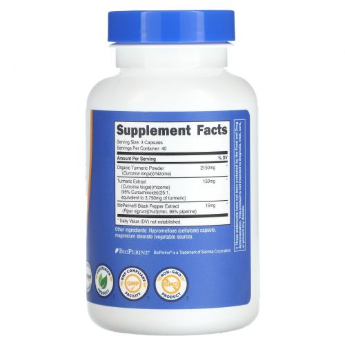 Куркума используется в Азии на протяжении тысячелетий. Куркума Nutricost содержит 2300 мг в каждой капсуле и 120 капсул в каждом флаконе.