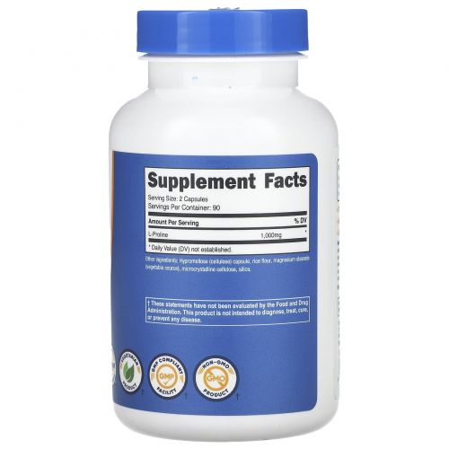 Капсулы Nutricost L-Proline содержат высококачественный L-пролин.
