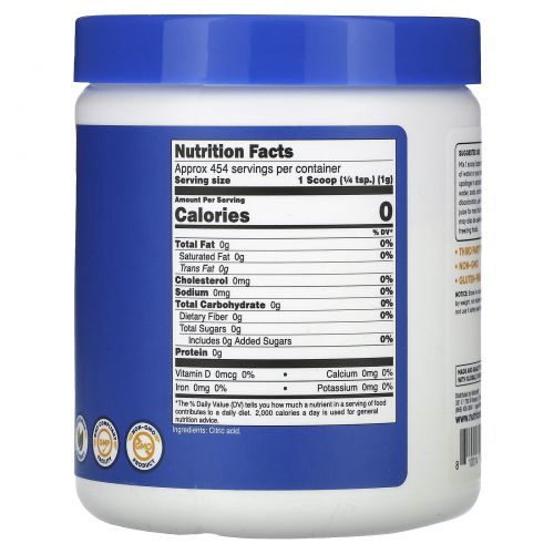 Описание товара Nutricost, лимонная кислота, без добавок, 454 г (16 унций)
