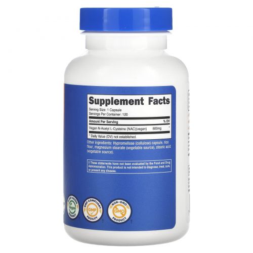 Описание товара Nutricost, NAC, веганский N-ацетил L-цистеин, 600 мг, 120 капсул