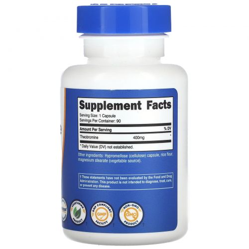Описание товара Nutricost, теобромин, 400 мг, 90 капсул