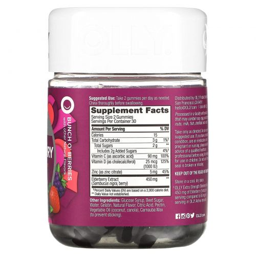OLLY, Бузина, усиленная сила действия, гроздь ягод, 225 мг, 60 жевательных мармеладок