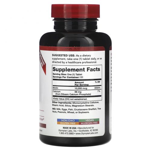Olympian Labs, биотин, 10 000 мкг, 120 таблеток
