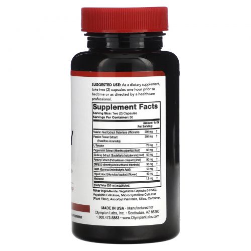 Olympian Labs Rest Easy содержит уникальную смесь трав и фитонутриентов, таких как корень валерианы, ДМАЭ и ГАМК. Эта смесь используется в качестве средства для облегчения ночного сна при периодической бессоннице, а также помогает снизить общее беспокойство. Чтобы улучшить сон, в формулу включен мелатонин, который увеличивает количество натурального мелатонина, вырабатываемого организмом во время сна.
