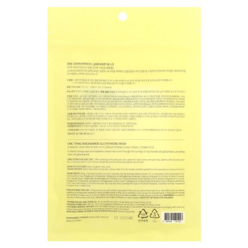 Описание товара One Thing, Маска с ниацинамидом и глутатионом, 7 шт., 115 мл (3,88 жидк. Унции)