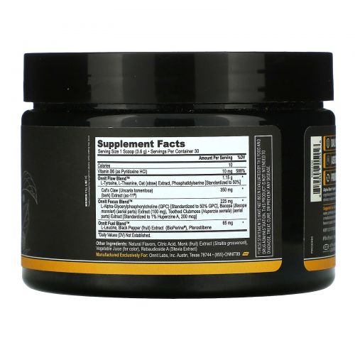 | Onnit Focus Blend™ L-альфа-глицерилфосфорилхолин (GPC) [стандартизован до 50% GPC], экстракт бакопа монье (Bacopa monnien) (надземные части) (100 мг), экстракт баранца пильчатого (Huperzia serrata) (надземные части) [стандартизован до 1% гуперзина A, 200 мкг] | 225 мг | * |