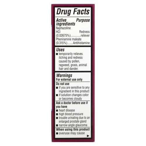 Описание товара Opcon-A, Клинически подтвержденное средство для снятия аллергии с глаз, 15 мл (0,5 жидк. Унции)