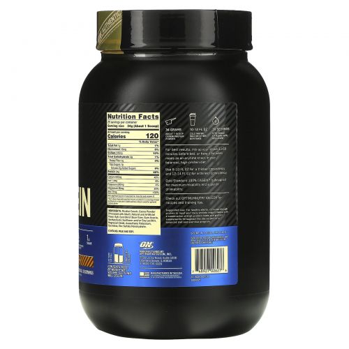 Описание товара Optimum Nutrition, 100%-ный казеин «Золотой стандарт», шоколад и арахисовое масло, 2 фунта (909 г)
