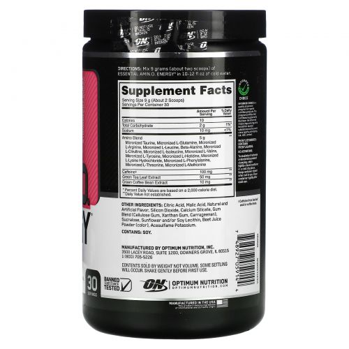 Описание товара Optimum Nutrition, Essential Amino Energy, Juicy Strawberry Burst, 9.5 oz (270 g)