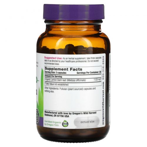 Описание товара Oregon's Wild Harvest, Мелисса, без ГМО, 90 растительных капсул