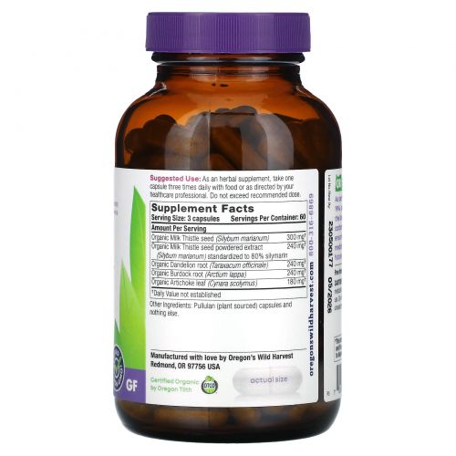 Описание товара Oregons Wild Harvest, Одуванчик, расторопша, 180 веганских капсул