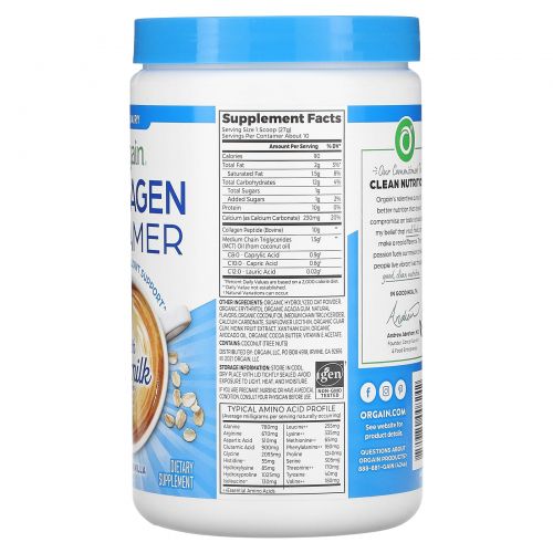 Описание товара Orgain, Коллагеновые сливки с порошком из овсяного молока, французская ваниль, 283,5 г (10 унций)
