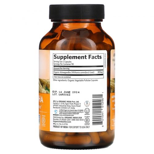 Описание товара Organic India, Ashwagandha, 180 Vegetarian Caps