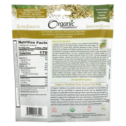 Описание товара Organic Traditions, Проросшая киноа, 12 унций (340 г)