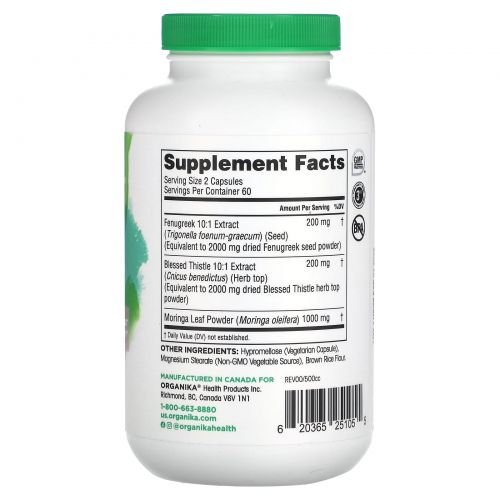 Описание товара Organika, MA's Milk, травяная поддержка лактации, 120 растительных капсул