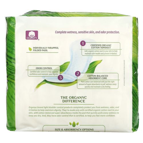 Легкие средства для контроля мочевого пузыря от Organyc полностью защищают вас от сырости, запаха и раздражения, помогая сохранить чувство собственного достоинства. Они сделаны только из сертифицированного органического хлопка, прилегающего к вашей коже, со сбалансированной супер впитывающей способностью внутри прокладки, которая быстро отводит влагу, чтобы вы оставались сухими. Кроме того, у них есть сертифицированный контроль запаха, чтобы вы чувствовали себя более уверенно.