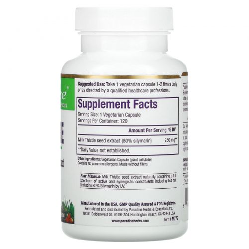Описание товара Paradise Herbs, Расторопша, 120 растительных капсул