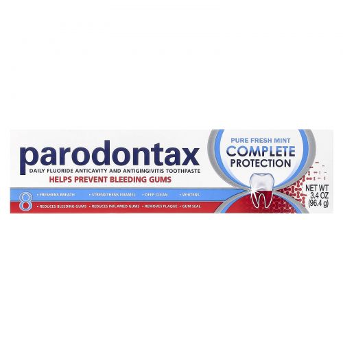 Описание товара Parodontax, Ежедневная зубная паста с фтором против кариеса и десен, полная защита, чистая свежая мята, 96,4 г (3,4 унции)