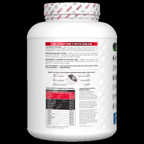Описание товара Perfect Sports, Diesel, изолят сыворотки из Новой Зеландии, шоколад тройной насыщенности, 2,27 г (5 фунтов)