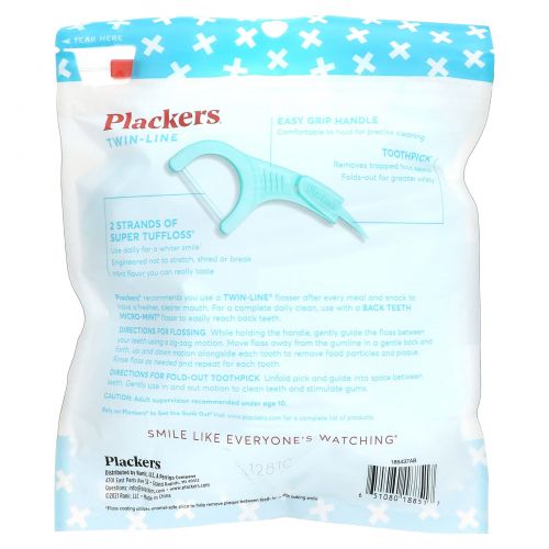 Описание товара Plackers, Twin-Line, зубочистки с нитью, экономичная упаковка, морозная мята, 150 шт.
