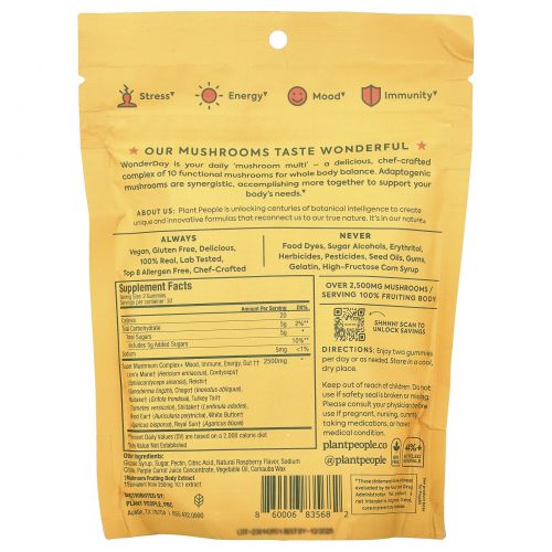 Описание товара Plant People, WonderDay®, жевательные мармеладки с грибами, дикая малина, 60 жевательных таблеток