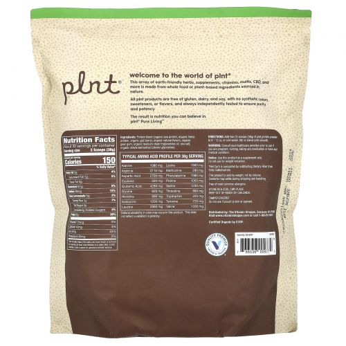 Описание товара Plnt, Органический растительный протеин, ваниль, 1140 г (2,51 фунта)