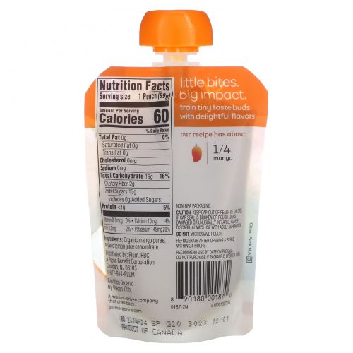 Описание товара Plum Organics, Органическое детское питание, 1 этап развития, просто манго, 99 г (3,5 унции)