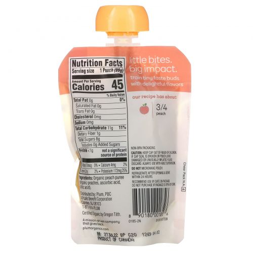 Описание товара Plum Organics, органическое детское питание, от 4 месяцев и старше, персики, 99 г (3,5 унции)