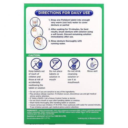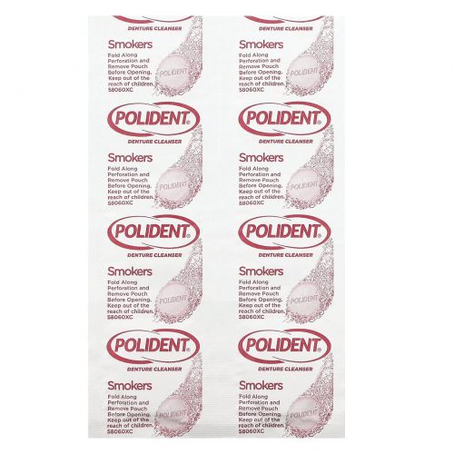 Описание товара Polident, Антибактериальное средство для очищения зубных протезов, ежедневное очищающее средство для курильщиков, 84 таблетки