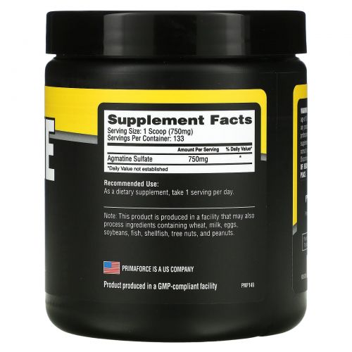 Описание товара Primaforce, Агматин, без ароматизаторов, 100 г
