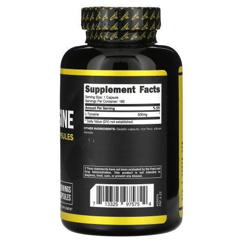 Описание товара Primaforce, L-тирозин, 500 мг, 180 капсул