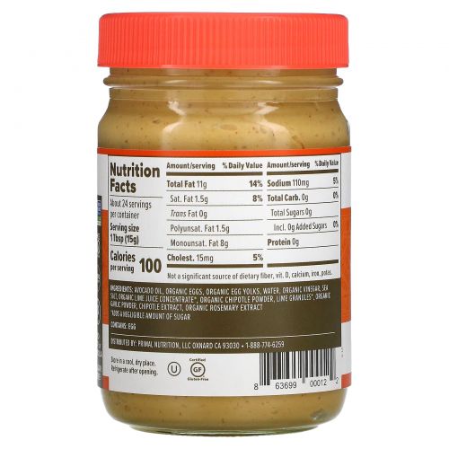 Описание товара Primal Kitchen, Mayonnaise with Avocado Oil, Chipotle Lime, 12 fl oz (355 ml)