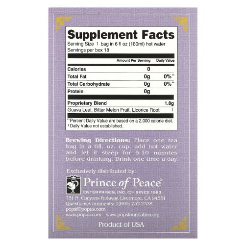 Prince of Peace, Herbal Tea, сахар в крови, 18 чайных пакетиков, 32,4 г (1,14 унции)