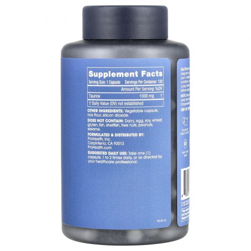 Описание товара ProHealth Longevity, Чистый таурин, 1000 мг, 120 капсул