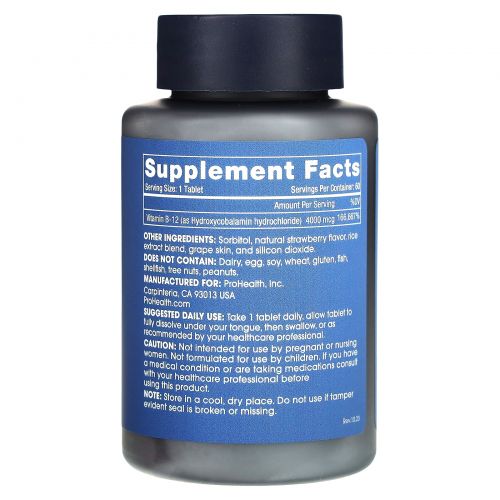 Описание товара ProHealth Longevity, Hydroxy B-12 Extreme, 4000 мкг, 60 таблеток