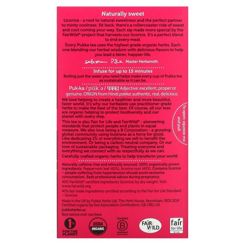 Описание товара Pukka Herbs, Травяной чай с мятой и солодкой, без кофеина, 20 пакетиков, 1,05 унции (30 г)