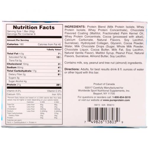 Описание товара Pure Protein, Батончики с высоким содержанием белка, с шоколадным вкусом, 6 батончиков, 1,76 унций (50 г) каждый